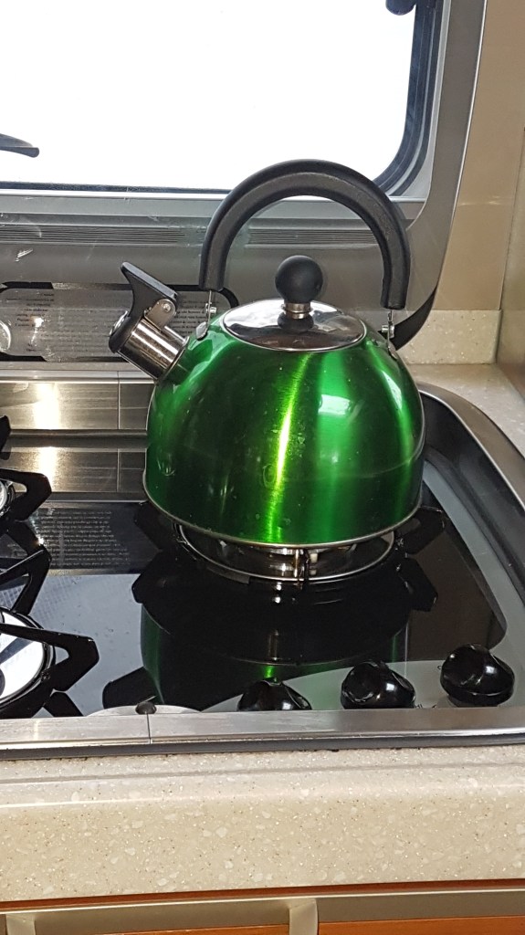 En stavmixer, ett strykjärn, en äggkokare och en elvisp har fått följa med. Vi har slängt ut vattenkokaren och kaffebryggaren, då de drar alldeles för mycket ström. I stället kokar vi vatten på gasolspisen. I husvagnen hade vi tillgång till ström hela tiden och stod på 16 Ah säkring. Det gjorde att vi inte behövde bry oss nämnvärt om elförbrukningen. Nu blir det annorlunda, och man får tänka till lite extra. Ibland kommer vi ha tillgång till ström, ibland får vi lita till våra batterier.