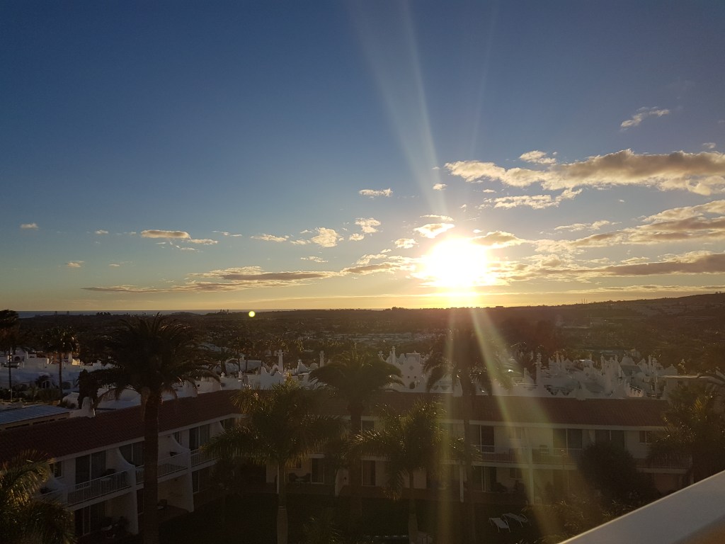 Att flytta till Maspalomas gav oss bättre väder tyckte vi. Något varmare över lag, kanske för att vi inte längre bodde precis vid vattnet. Vinden kom heller inte in på vår altan, man kunde sitta ute mycket mera. Vi hade betydligt närmare ut från komplexet nu. Vi var fortfarande inlåsta och fick öppna grinden ut med nyckel, men det kändes bra. Inga obehöriga som kom in på området. Det fanns även vakter som såg till att det var tyst efter kl. 22 på kvällen.