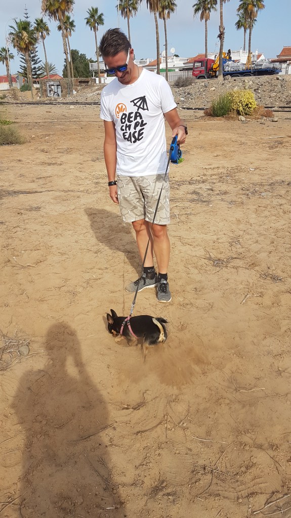 Ett ställe hon inte fick vistas på var på stranden bland turisterna, och inte heller på poolområdet. Så de fåtalet gånger vi besökte stranden fick Chillie vara hemma. Men över lag har man en helt annan syn på husdjur på Gran Canaria mot i Sverige. Veterinärklinik fanns i Maspalomas, men vi besökte den aldrig. Hunden var pigg och glad hela tiden. Foder fanns att köpa i djuraffären, samma som hon var van vid, Royal Canin.