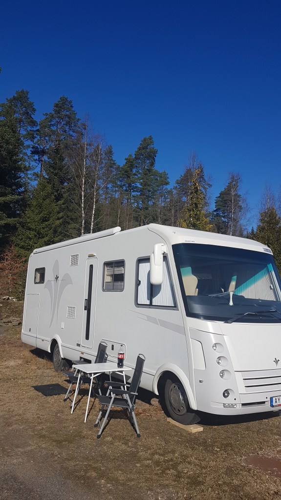 För vår del handlar det ju om att vi aldrig hann komma iväg utomlands. Och just nu är vi glada för det, vi slapp ju kasta oss ”hem” hals över huvud, som en hel del andra fick göra. Vi har ju turen att kunna stå still på en bra ställplats, här på Kattugglan. Vi har nära till stan, men bor ändå på landet. Kunde inte vara bättre just i dessa tider.