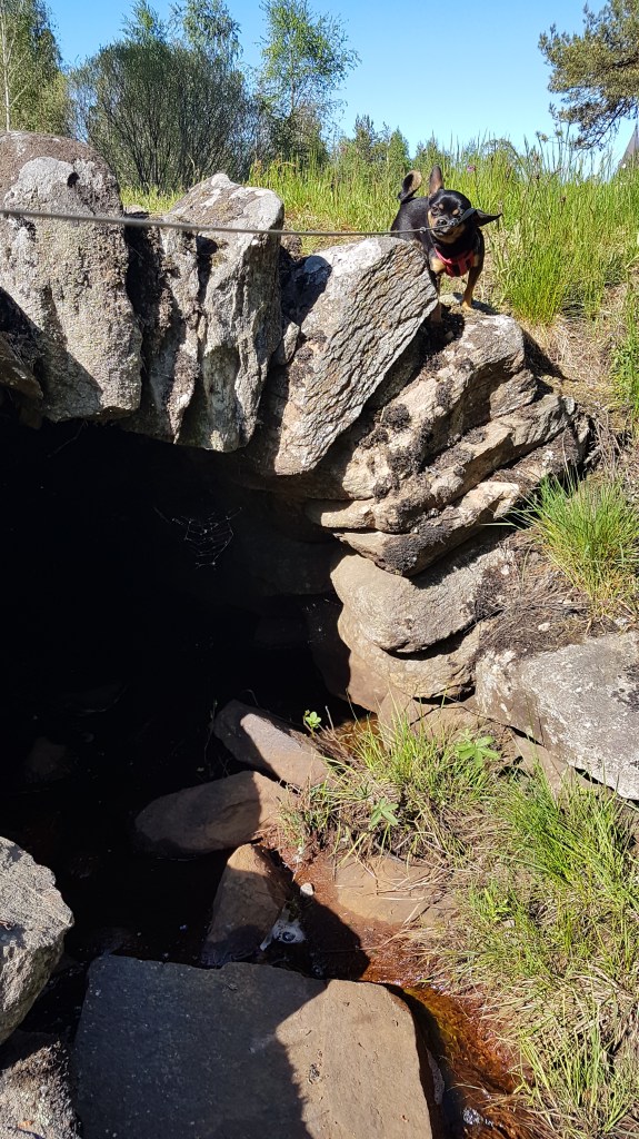 Vi tog en tur med personbilen och besökte två olika jobb-förfrågningar ute på landet. På vägen hem svängde vi inom macken och köpte glass. Fint att fika ute i solskenet. Sen fick vi frågan om vi ville följa med min syster på geocaching. Det var länge sedan nu, så vi hakade på. Det blev i närområdet, vi tog en tur utanför stan bara. Men hittade som vanligt fina ställen som man sällan eller aldrig besöker, och det blev lite fina bilder.
