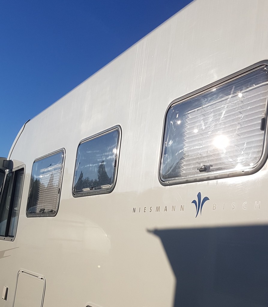 Ibland kunde vi inte ha dörren öppen för det pep hela tiden, ibland pep den inte alls. Lite oregelbundet om man säger så. Nu har vi istället fått en ny trapp, som funkar alldeles utmärkt. Den lyder direkt då vi trycker på knappen, och framförallt, den är tyst. Den piper om den är ute när motorn är igång, vilket självklart är bra. En varning – ta in trappan. Eller om man öppnar dörren och trappan är ute när motorn är igång. Helt OK.