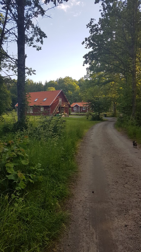 Ett litet torp i skogen hade fått tillökning på gården av en större byggnad, fanns inte heller när jag var barn. Men det såg fint och välskött ut, och numera gick det en grusväg förbi huset. Förr tog vägen slut vid torpet och ersattes av en stig.