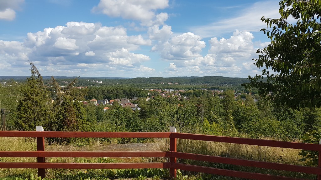 Efter frukost söndag morgon, drog vi vidare. En rastplats på vägen bjöd på fin utsikt över Tranås, vi passade på att stanna och fotografera. Fint väder men ganska blåsigt här uppe på höjden.