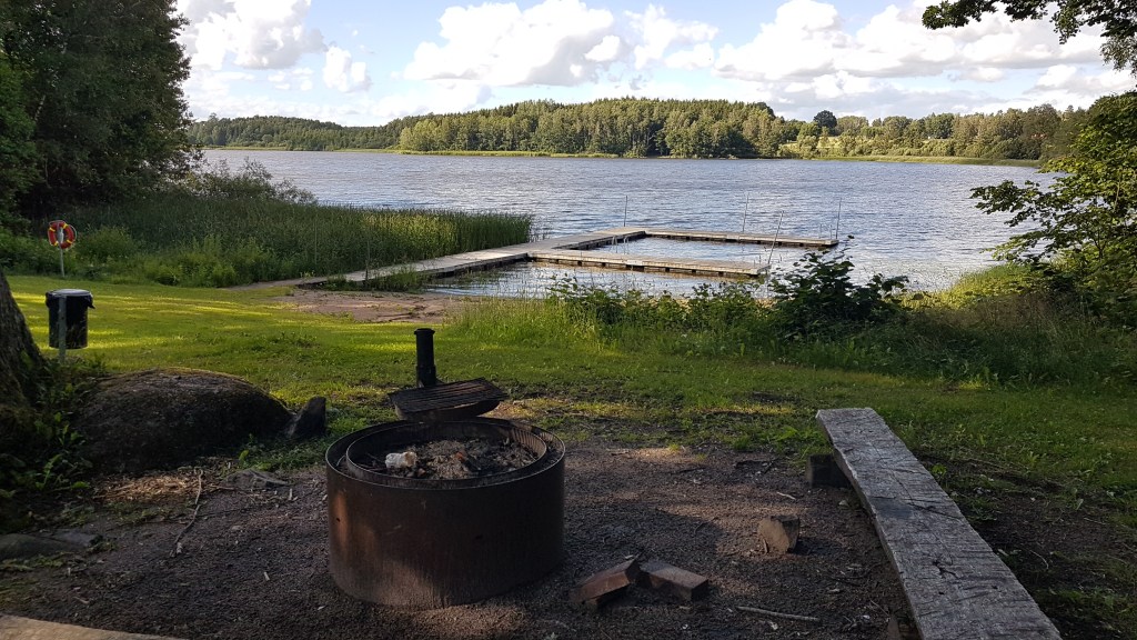 Landade vi till slut vid en liten badplats i Boxholms kommun, i byn Västra Harg. Då tyckte vi att vi kört tillräckligt för dagen. Vägarna blev mindre och mindre, sista biten endast en grusväg som satte stopp för all form av möte. Som tur var mötte vi ingen, men bilen gungade bra på den smala vägen. Tur man har fjädring…