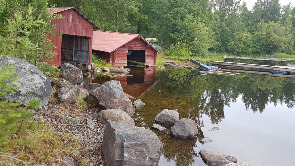 Det regnade när vi kom fram till Svärdsjö, men höll uppe senare på kvällen. Som ni ser så gillar vi att bo vid vattnet. Det blev en promenad, lite mat och netflix innan vi somnade till tonerna av exakt ingenting. Det var helt tyst och sjön låg som en spegel. Underbart.