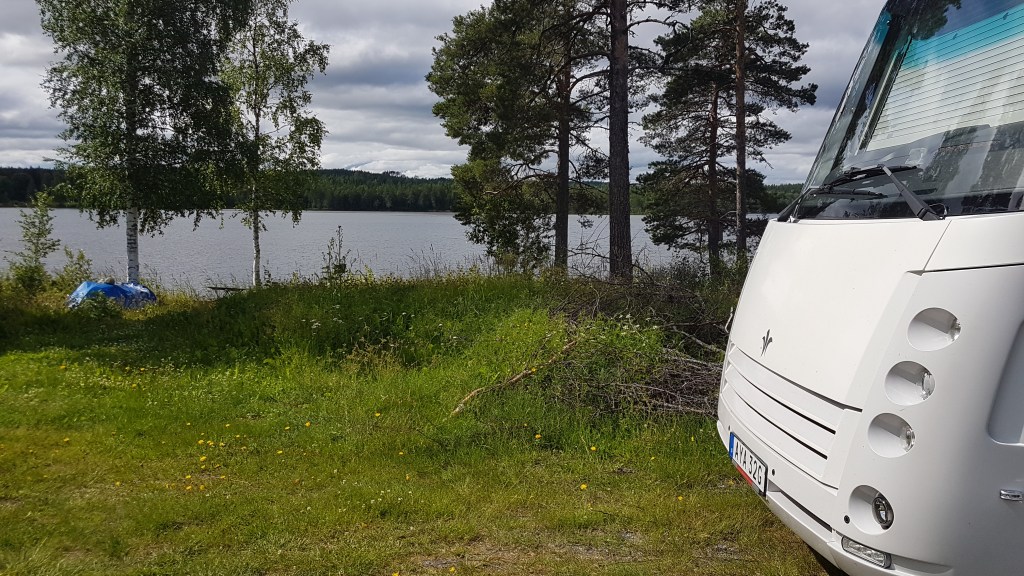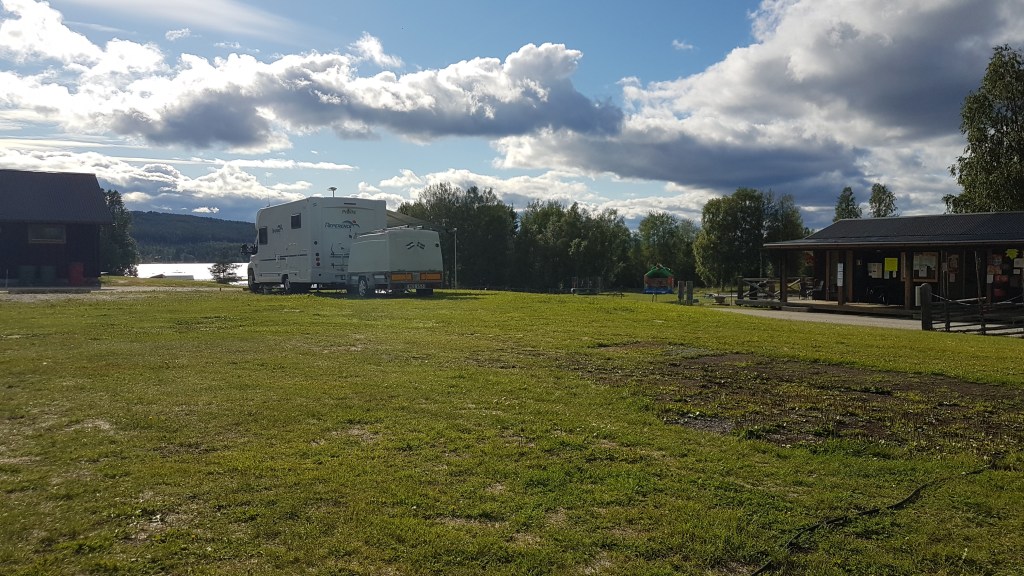 För första gången står vi nu på en camping med Nisse. Vi räknar inte vår ”hemmacamping” i Toftaholm eftersom det inte är en officiell camping, utan en privat klubb. Men nu har vi landat i Jämtlands län och Bergs kommun.