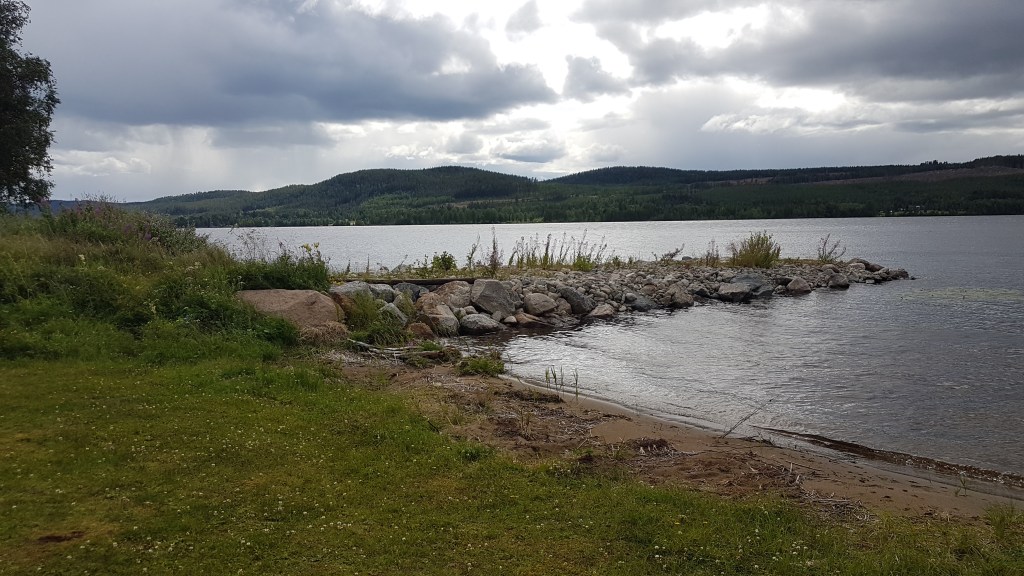 Vi valde att stanna i utkanten av Östersund vid ett köpcentra. Jag behövde nya skor, Dan nya joggingbyxor (läs sitta-hemma-och-slappa-byxor). Så det fick bli en tur in på Stadium outlet och shoppa loss. Vi hittade vad vi ville ha och vart nöjda. Även ett kastspö blev inhandlat, ifall vi skulle råka på ett bra fiskeställe.