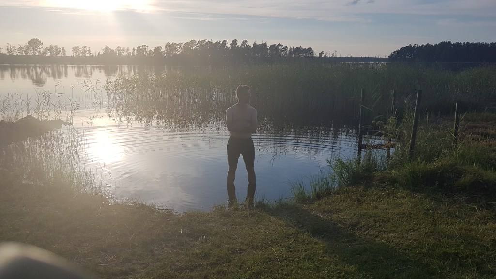 Sådana här dagar är vi glada att vi bor precis vid sjön, det är bara att gå ner och hoppa i. Andra dagar med hård vind är det mindre behagligt. Men just nu njuter vi av värmen och härliga ljumna sitta-ute kvällar. Några dagar till, säger SMHI. // Jeanette