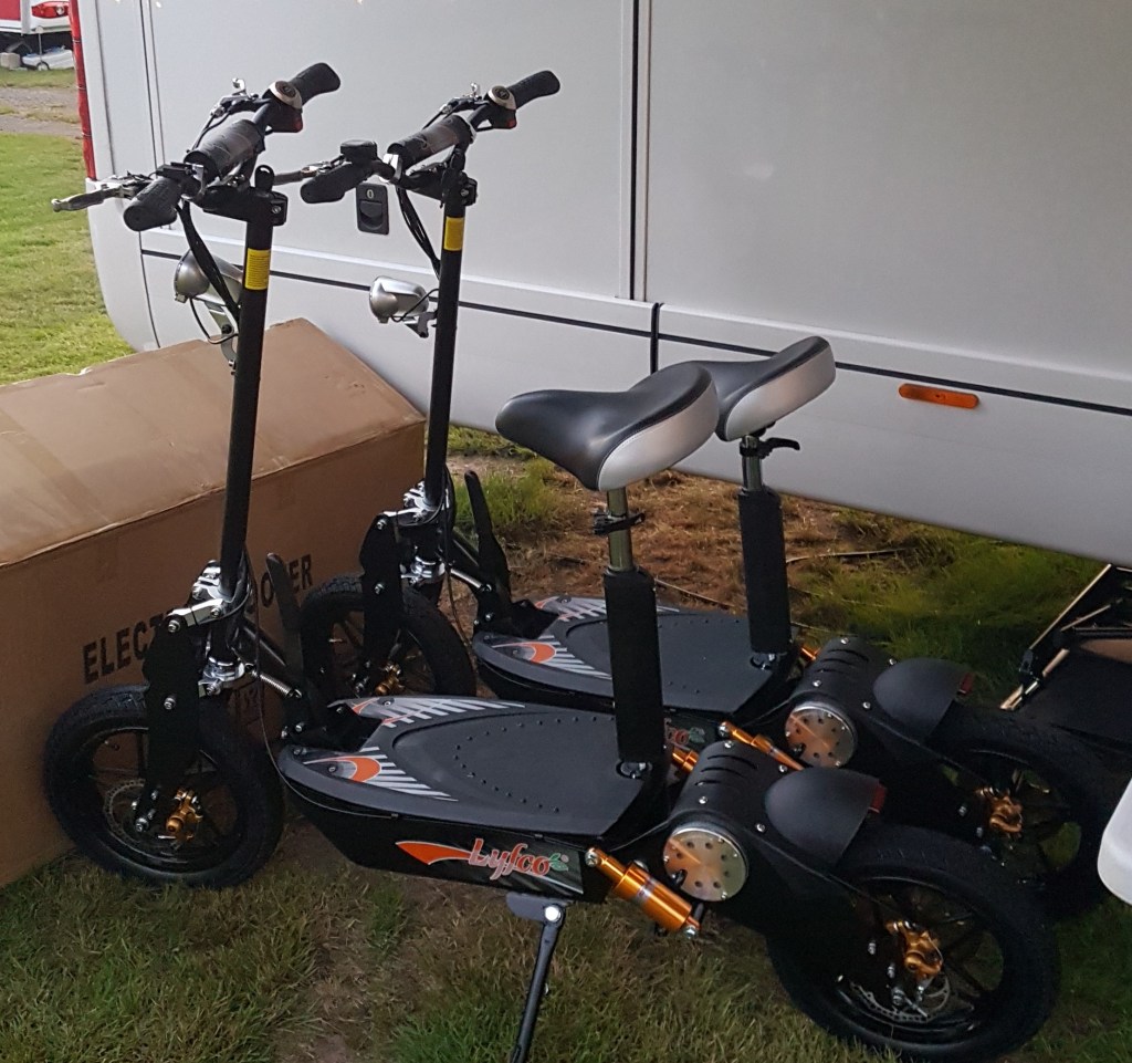 Eftersom vi valde att köpa el-scooters så fick vi möblera om igen såklart. Dessa tar stor plats och väger mycket. Vi har nu fått svar från företaget som sålde dem att de vill ta in och titta på den trasiga. De vill själva laga den och sedan skicka tillbaka den till oss. Men med tanke på att de tar en vecka på sig mellan varje mejl så känner vi att vi inte har tid med detta. Det skulle säkert ta flera månader innan vi fick tillbaka den.