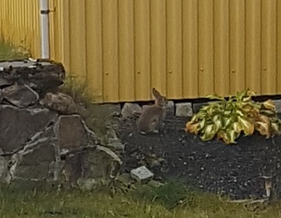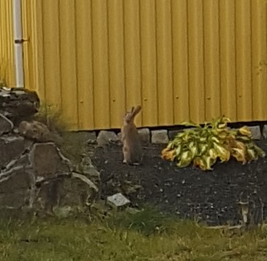 Här i Berghem där vi nu stått ett tag, bor vi granne med hönshuset. Inne i huset hos ägarna bor det två hundar och två katter. Men vi har även fått ytterligare en granne nu efter sommaren. Han är inte helt lätt att fota, så bilderna är tagna genom fönstret och sedan förstorade. Men här är han…eller hon. Svårt att avgöra. En söt liten kanin i alla fall. // Jeanette