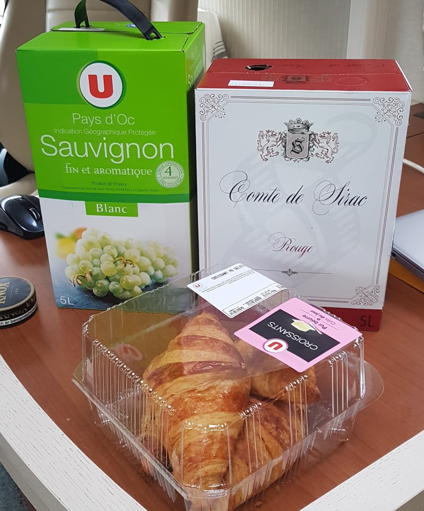 Även om vi inte lyckades köpa gasol, hittade vi i alla fall en mataffär. Eller, snarare en affär som sålde det mesta från soffor till diskmaskiner. Och mat. Kul att shoppa, helt klart. Vi fick 10 liter vin, och en hel korg med kött, lök och andra matvaror för 32 €. Tror inte vi får 2 stycken dunkar vin för de pengarna i Sverige…