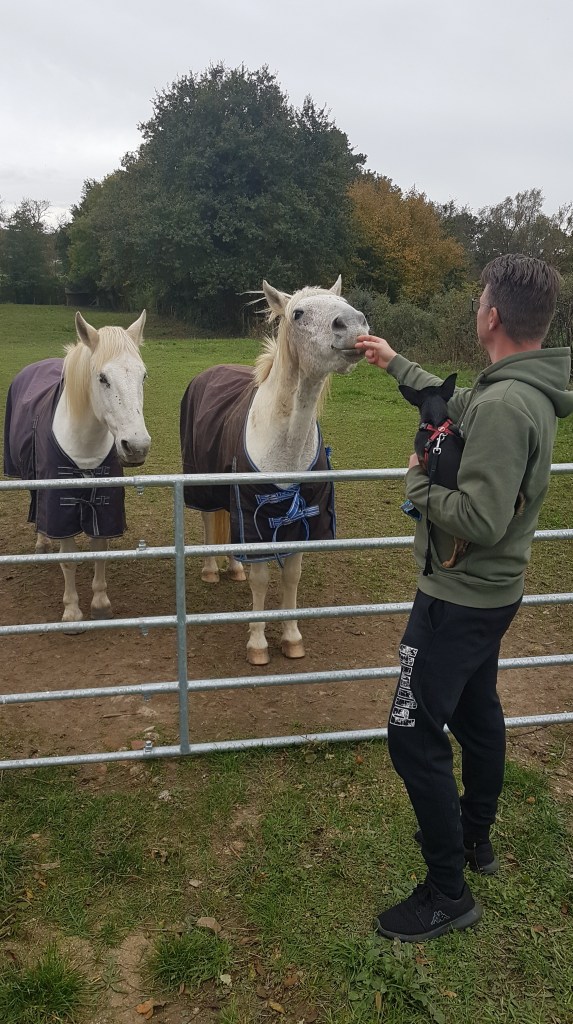En natt i Ebreuil, ingen direkt ställplats, mera en plan grusplan. Blev uttittade av en man i personbil…. Han åkte när vi drog ner jalusiet… Hm, där vill vi inte ens veta varför. En annan husbil med lös hund, promenerande människor med lösa hundar. Japp, man har hundarna lösa i Frankrike, tydligen. Vi tog en tur runt omgivningarna och hittade hästhagar, och även där en serviceplats i närheten. Och en lekpark…