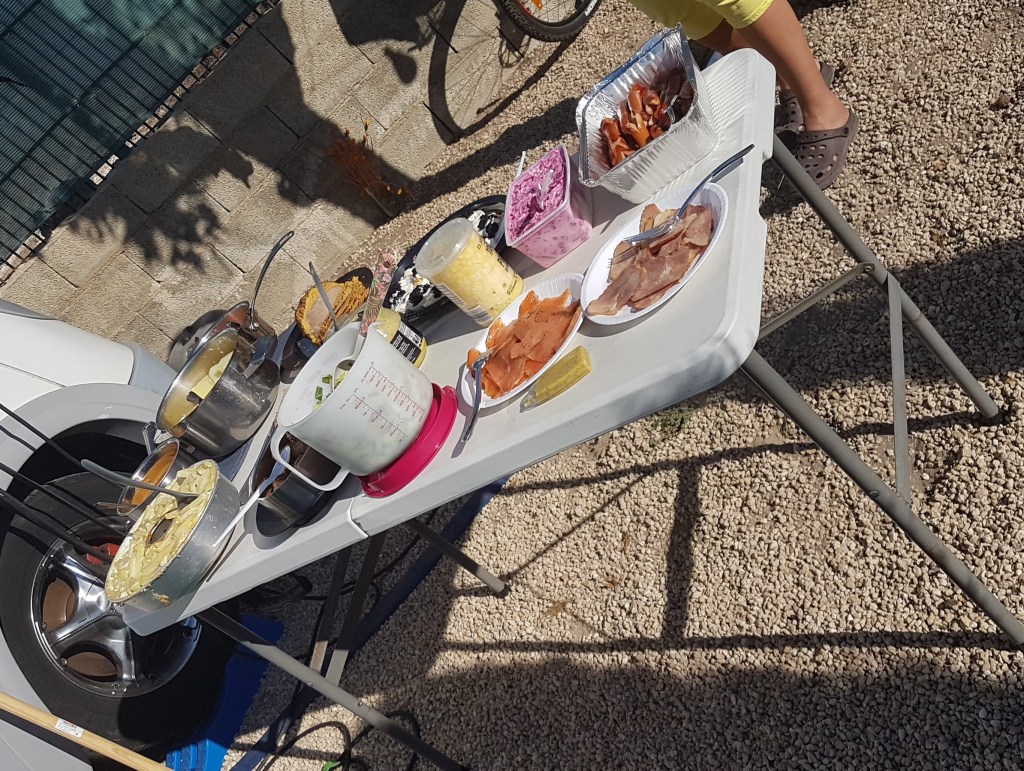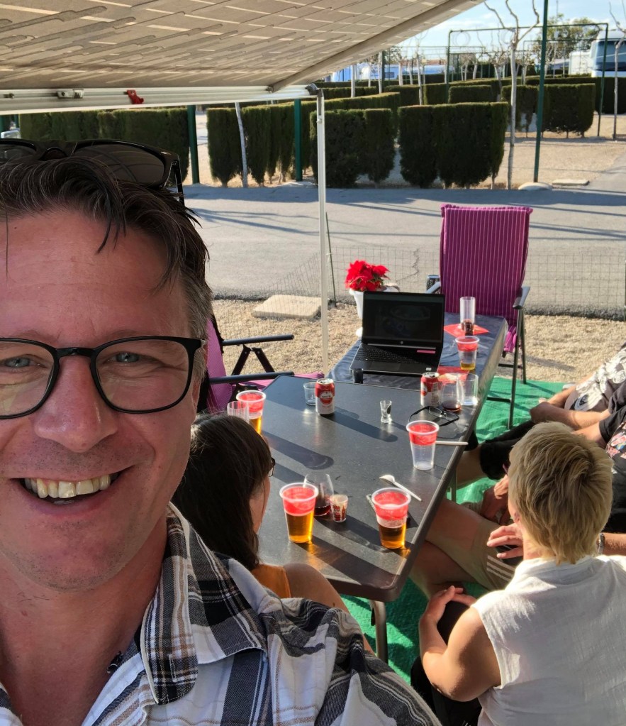 Hela dagen hade vi strålande solsken, även om det inte var jättevarmt. Men precis lagom för att kunna sitta ute hela tiden. Det kylnade på under kvällen och tröjor och även jackor kom fram så småningom. Men det gick fortfarande att sitta ute. ”Svenskarna på campingen”, en större grupp svenskar som bor lite längre ner än vi, hade tomtebad mitt på dagen i poolen. Vi valde att inte vara med där, det kändes inte som badväder precis. Vi ville heller inte vara för många i grupp, då det inte är så lätt att hålla avstånd just där.