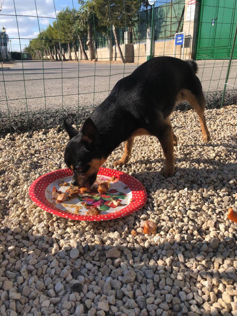 Vi hjälptes åt att fixa maten, på bilden syns varken Ris à la Malta som vi åt lite senare, eller ostbrickan som också kom fram senare under kvällen. Vi tog heller inte bild på oss själva, men däremot på ena hunden när hon fick sin jul-tallrik.