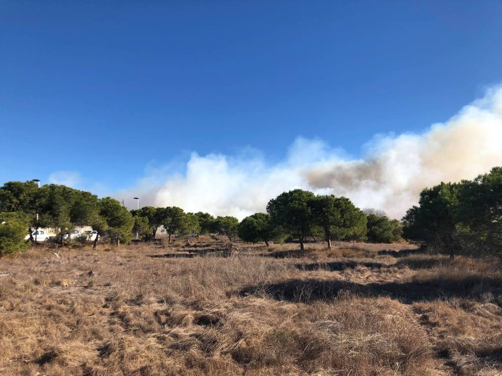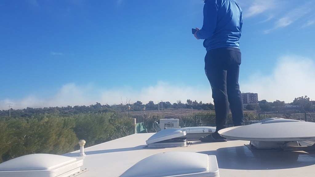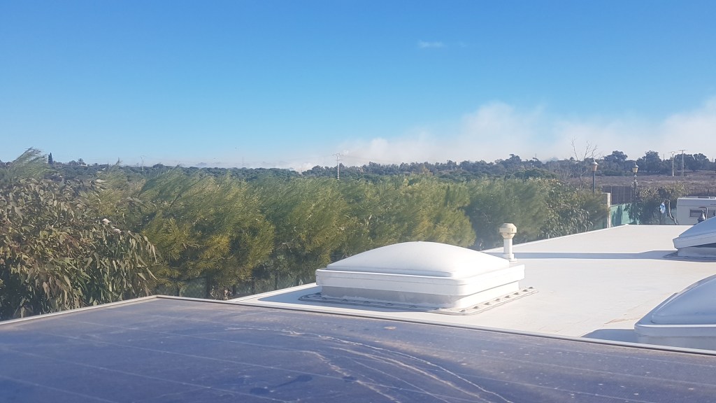 När vi kom fram dit och såg elden så fanns det endast en bil från Guardia civil på plats. Under tiden vi stod där kom det två brandbilar och annat folk anslöt. Vi valde att backa och konstaterade att det var tur vinden låg på det hållet. Annars hade villorna legat risigt till.