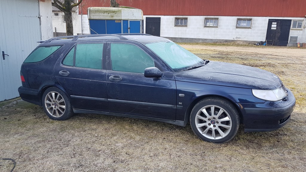 Vi hittade en i närheten som vi tyckte lät bra. Nybesiktigad och ett märke vi väl kände till. Ring och kolla. Japp, välkomna på en gång, sa ägaren. In och låna syrrans bil, hoppa i kläderna och iväg. Någon timme senare var vi ägare av en splirrans ny Saab 9-5. Nä, jag skojar såklart. Saab är det, men ny är den inte. Årsmodell 2001… Samma år som Dan och jag träffades, måste vara en bra bil…