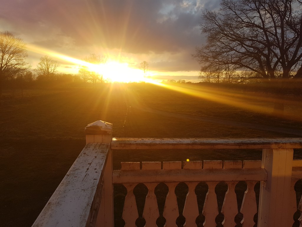 Solen går ner rakt ut från vägen som leder in till huset. Alltså har vi första parkett uppe på balkongen. Eller ute på verandan med för den delen. Att fota solen funkar sådär med min mobilkamera, men jag gjorde ett tappert försök i går kväll i alla fall.