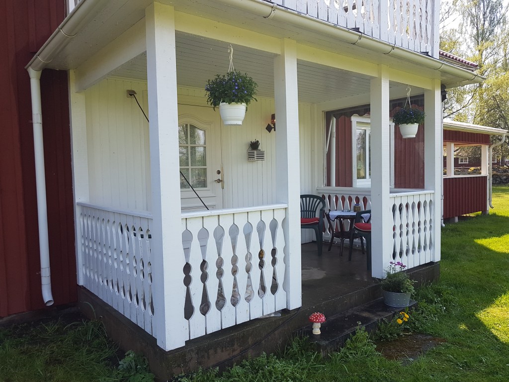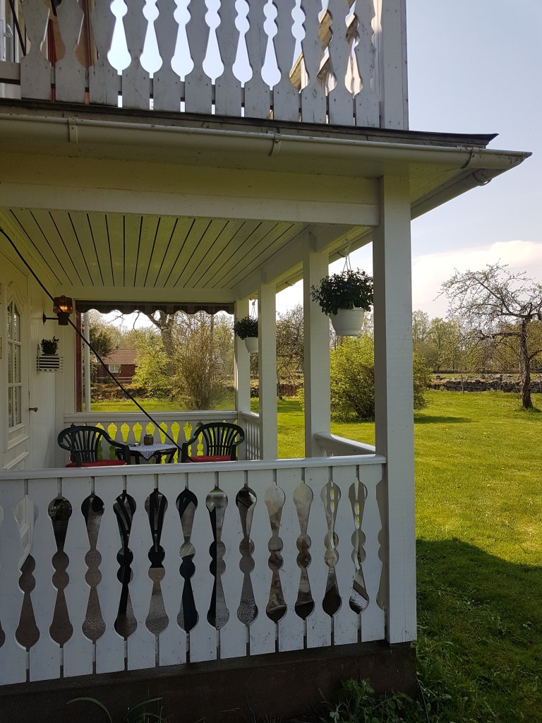 Vi har ägnat första lediga dagen åt att sitta i solen och njuta av maten, tvätta valda delar av huset och måla lister på övervåningen inför tapetsering. Renoveringen går sakta framåt och vi kommer nu beställa nya tapeter. Huset vi hyr har sett sina bästa dagar, och det behövs underhåll både här och där. Men bara lite vatten och såpa gjorde underverk på vår veranda, där vi gärna tillbringar tid i två plaststolar…