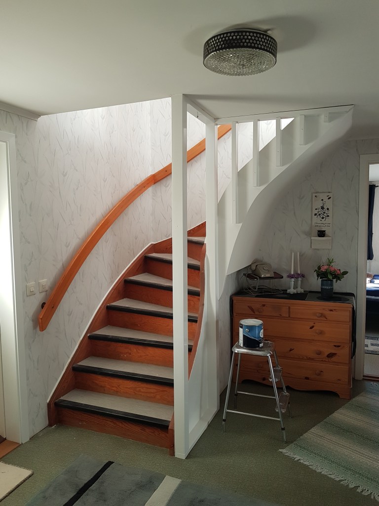 Jag kan inte påstå att jag gjort allt detta själv, men faktiskt en hel del av det. Dan fick både spackla, slipa och sätta tapeterna i trappan för där var jag för kort i rocken och för orutinerad för att få till det. Men alla snickerierna har jag målat, liksom resterande väggar. Samt spacklat, slipat och tapetserat. Bra träning för mig.