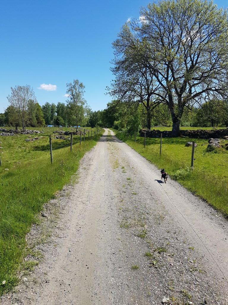 Fast när vi hade ätit lunch tog vi en promenad istället och gick runt lite i byn. Kollade in platsen där man lägger i båtarna i Flåren. Nu har vi ju visserligen ingen båt, men vi tänkte att man kanske kunde fiska där. Det fanns en brygga och en liten pir ut som skulle kunna fungera. Vi gillar verkligen omgivningarna runt vårt hus, mycket sten och mycket åkrar.