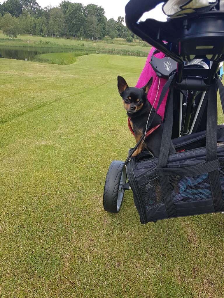 Vi gillade banan över lag, men gillade inte att de hade ojämna tee. Helt platt är den inte, det var lite backar här och var. Inte värre än att vi orkade gå. Inte jättesvår bana precis, men en hel del diken. Ganska tröga greener, tyckte vi. Vi kunde nyttja golfhäftet här och det fanns 4 bilar att hyra. Inget vi gjorde denna gången. Det kostade 100:- att stå på deras husbilsparkering som var på asfalt, för oss. Ville man ha el kostade det 150:- Kiosken var bemannad och bjöd på smörgås och korv. Liten shop fanns med. Trevligt ställe som vi gärna återkommer till.