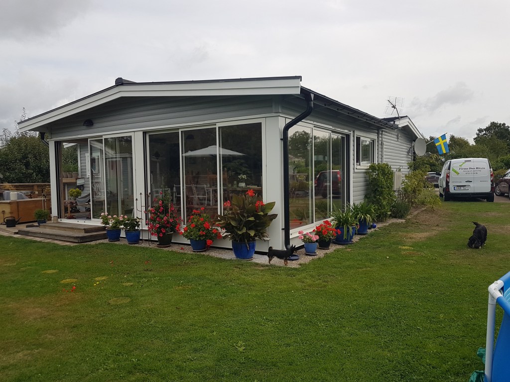 Tyskarna blev glada att slippa plocka ner och forsla bort allt de byggt upp, och vi blev glada för att slippa bygga upp allt en gång till. Win-Win så att säga. Alla blev glada och vi fick lov av styrelsen att komma tillbaka till vår fina pärla utmed Vidöstern. Så nu äger vi tydligen en husvagn igen, med tillhörande tält, altan och extratak(!)