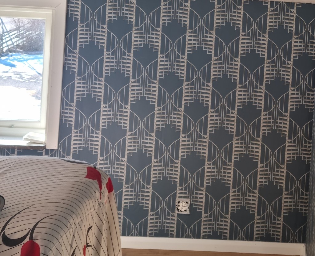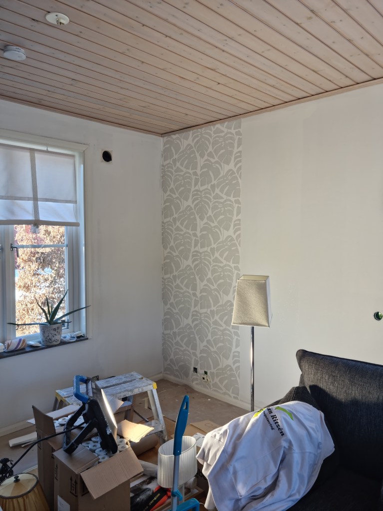 Nu har vi egentligen inte alls varit i just Stockholm, snarare en bit därifrån. Platsen vi har besökt ligger mellan Stockholm och Nynäshamn och är en mindre by, så vi har haft det lugnt och skönt där. En plats vi besökt ett antal gånger tidigare då ägarna tillhör familjen. Huset byggdes för 10-15 år sedan, som resten av byn, och nu ville de tapetsera om i princip hela huset, vilket blev ett stor-jobb för oss. Vår lilla firmabil var fullpackad med arbetskläder, spackel, lim och tapeter… Och Chillie förstås.