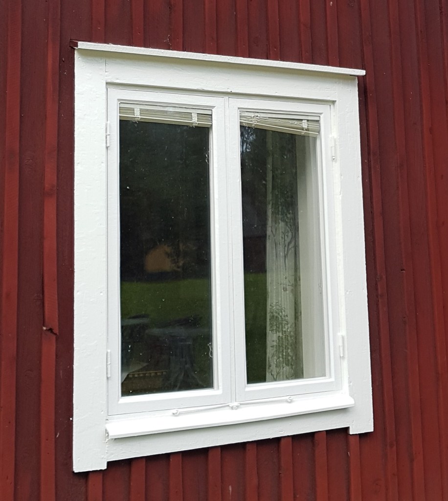 Bilden visar ett av de 40-tal fönster vi helrenoverade i somras, de flesta av dem gjorde jag ensam. Dessa kittades och målades invändigt, utvändigt och emellan. Alltså hela fönstret, utan att glaset togs bort. Nästan alla dessa fönster lyfte vi ner från huset och fixade dem liggandes och ståendes. Vidare blev det för mig runt 50 fönster till som endast målades på utsidan, då de fortfarande hängde på husen.