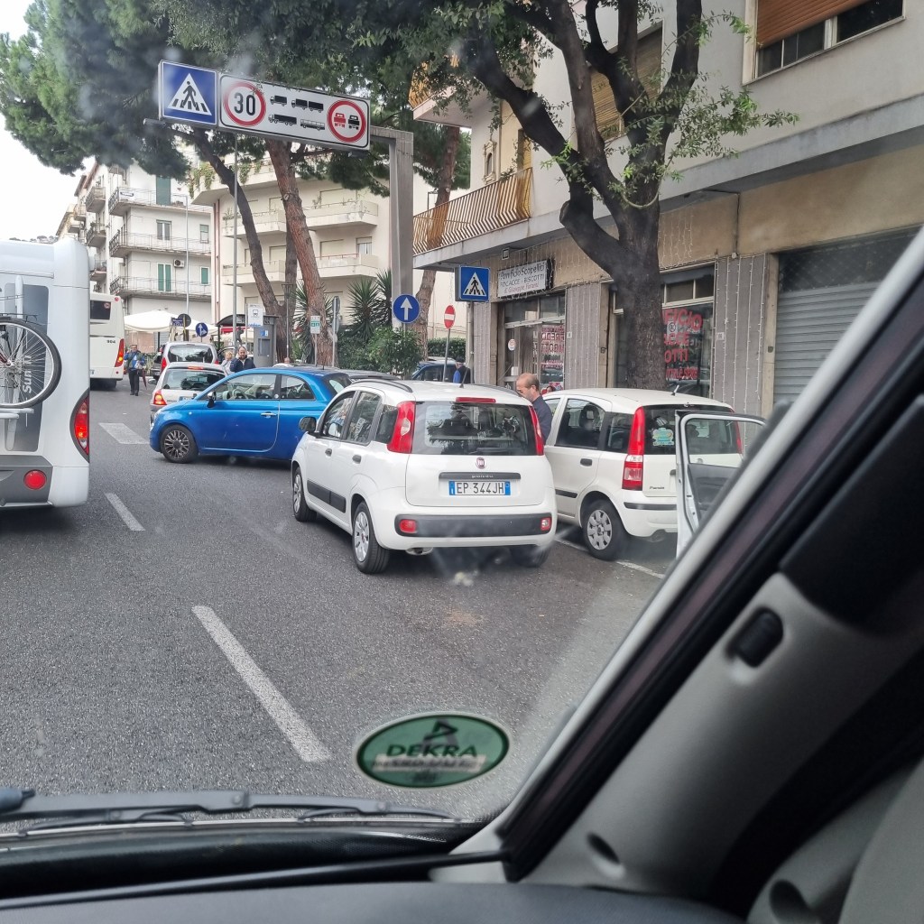 Att köra bil är snäppet bättre än att gå eller cykla om en nu ser till säkerheten. Men att få plats mellan dessa illa parkerade bilar är inte helt enkelt. Att dubbelparkera eller att helt enkelt köra upp bilen med fronten först på trottoaren så att bakdelen sticker ut mitt i vägen, det gör man här. Eller varför inte bara parkera i rondellen…