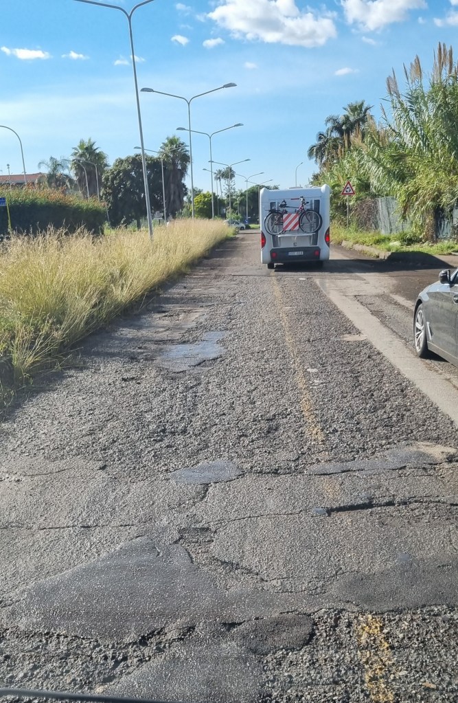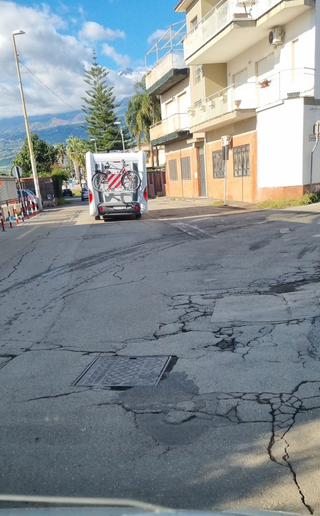 Ja, det är lite därför vi valt att inte utforska mer av ön. Bilen rister sönder, i princip alla vägar är riktigt usla. Betal-vägarna är något bättre, men även där få man väja för hål och bulor. Motorvägen tvärs över Sicilien, mellan Catania och Palermo var riktigt usel att åka på. Dock ingen betal-väg… Detta är synd då vi hade sett fram emot att få besöka de mindre byarna uppe i bergen. Men icke.